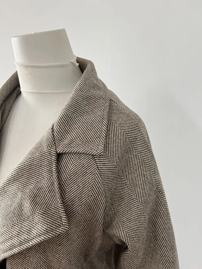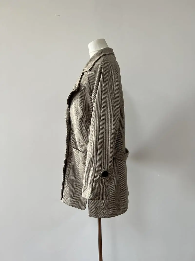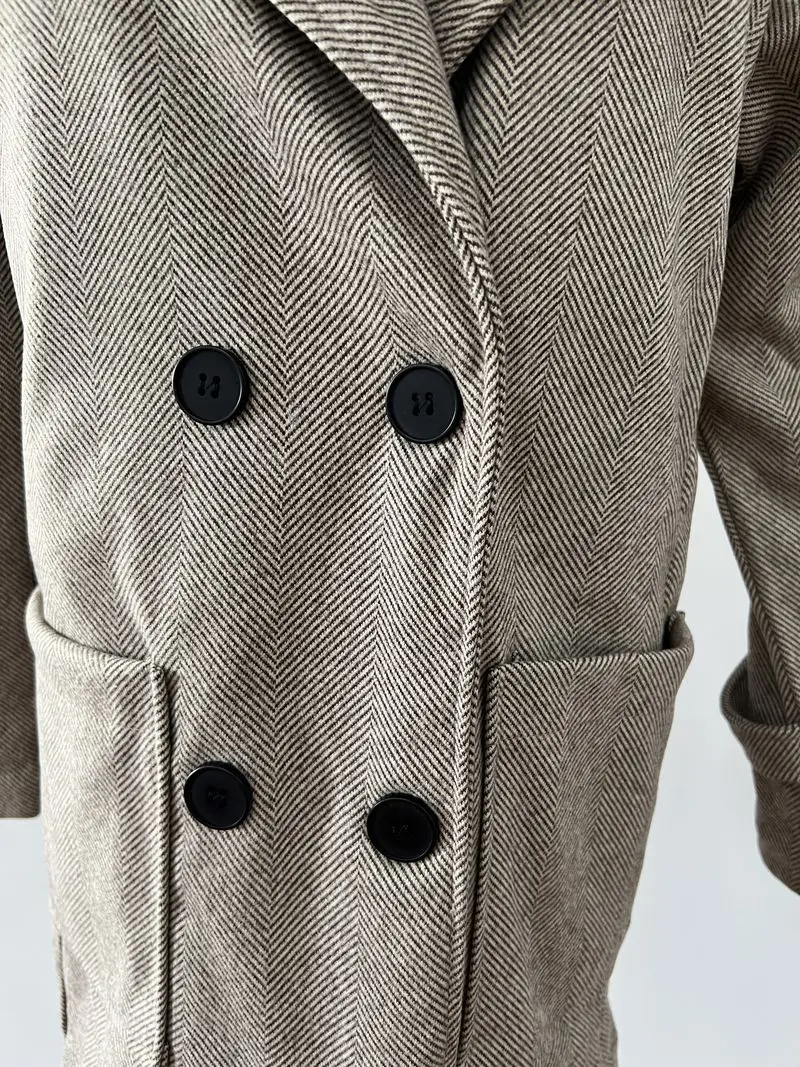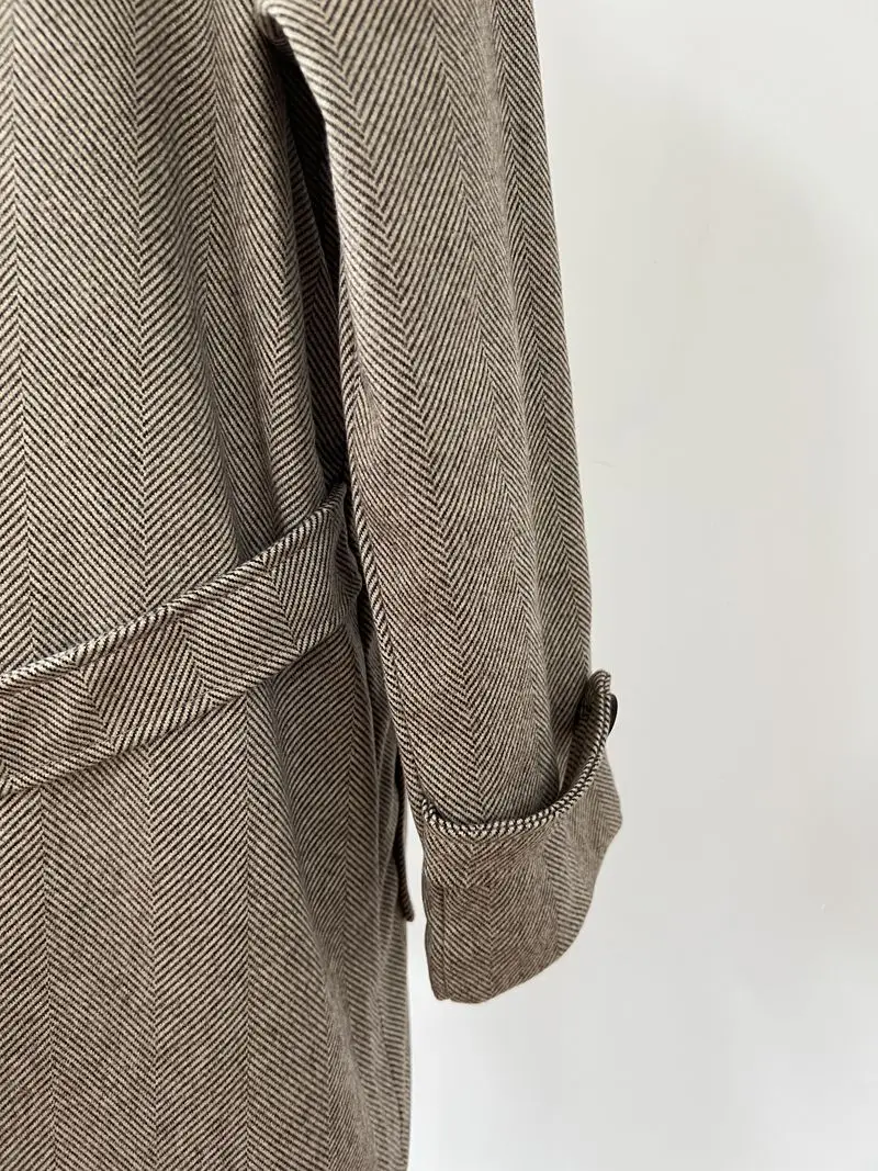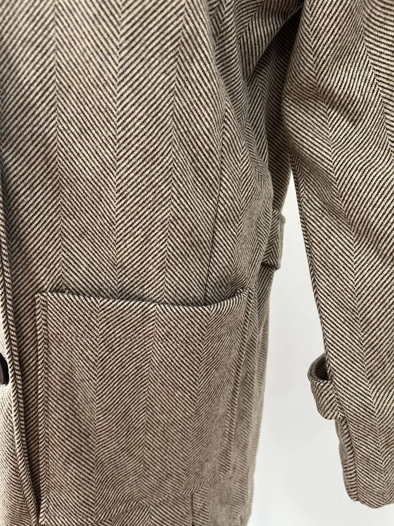 Women's Aut Long Sleeve Herringbone Thick Tweed Blazer Vintage Casual Suit Collar Coat.